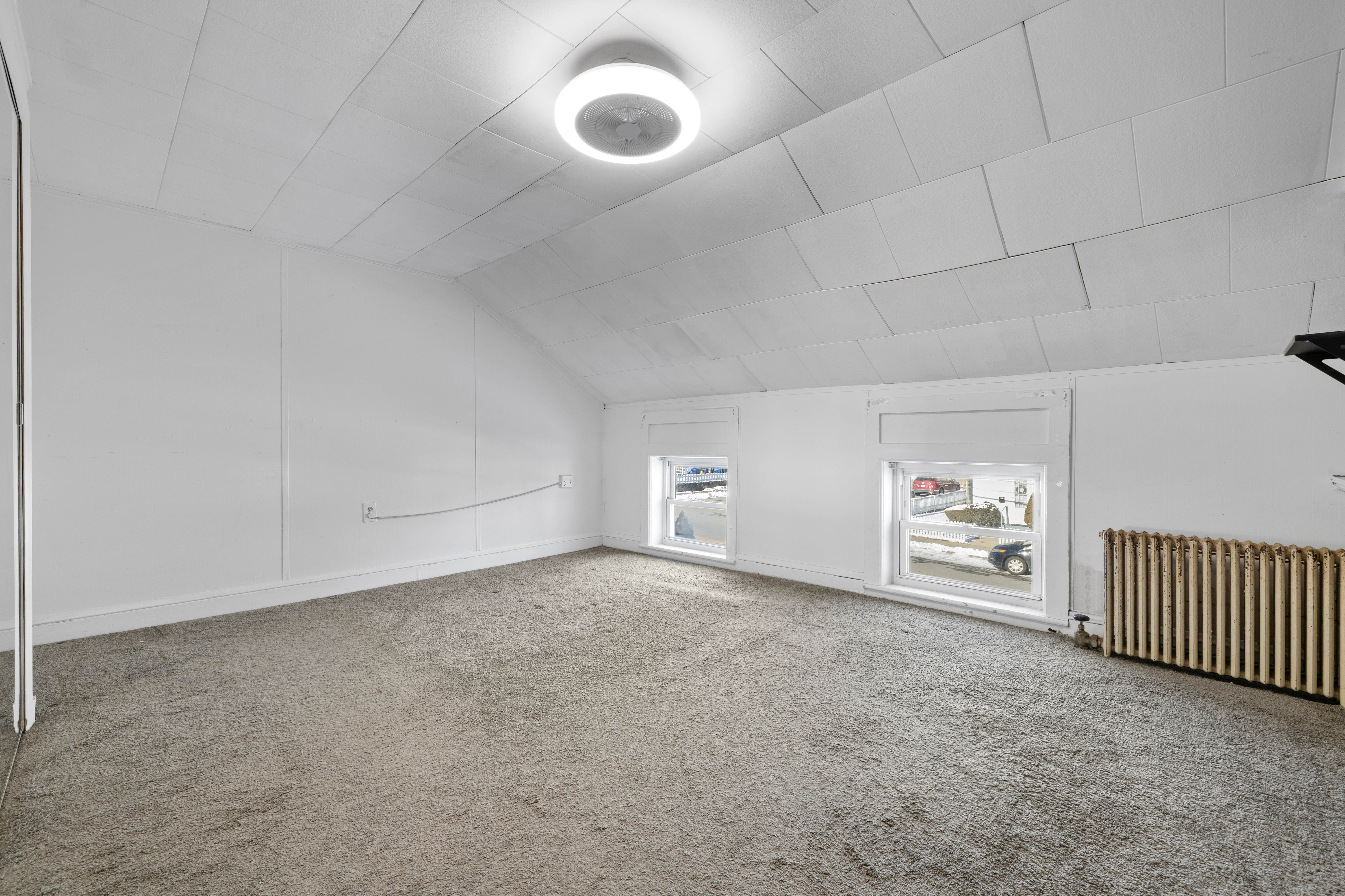 Large windows with neighborhood views